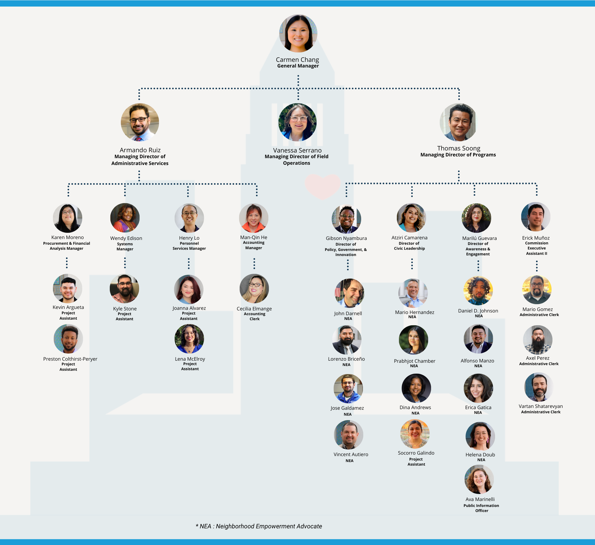 Erica Gatica Doughty (she/her) is a Neighborhood Empowerment Advocate with EmpowerLA. In her role, she supports Neighborhood Council Boards with capacity building, training, and organizing skills that empower board members and engage the community. Currently, she supports the Bel Air-Beverly Crest, Del Rey, Empowerment Congress North, Empowerment Congress Southwest, Greater Toluca Lake, North Westwood, Westchester-Playa and Westwood Neighborhood Councils. Additionally, Erica leads EmpowerLA’s annual Youth Conference and provides vital support to the annual Congress of Neighborhoods. She also leads the EmpowerLA Awareness & Engagement Work Group.