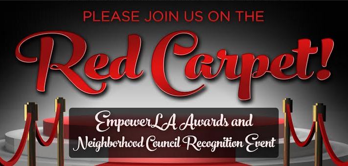 Please join us on the Red Carpet! The EmpowerLA Awards and Neighborhood Council Recognition Event will be held on Friday, September 11, 2015 at Los Angeles City Hall, 200 S. Spring St. 3rd Floor. This event is for all current Neighborhood Council Board members to thank you for your dedication to improving our great city. You may bring a guest. Dress casual to formal – it’s up to you!