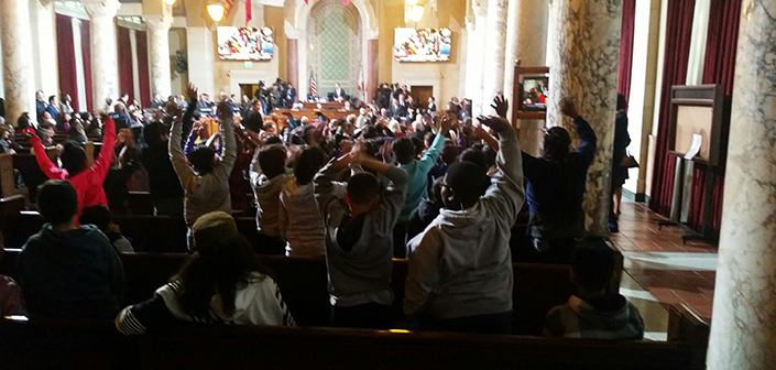 Kudos to Harbor Gateway North Neighborhood Council for partnering with Councilmember Joe Buscaino to bring three 5th grade classes from 116th Street School for a tour of City Hall today! Some of the kids serve on the school’s student council so they received a great look at how local government works in Los Angeles. Thanks to CM Buscaino, HGNNC and their Youth Representative, Richard Lee, for connecting City Hall with the next generation of leaders!