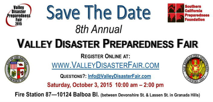 The 8th Annual Valley Disaster Preparedness Fair will take place on Saturday, October 3, 2015 from 10:00 am to 2:00 pm at Fire Station 87 in Granada Hills. Visit www.ValleyDisasterFair.com for more information and online registration. The comprehensive Fair Flyer can be downloaded here.