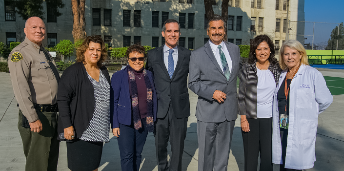 LOS ANGELES — Mayor Eric Garcetti and Los Angeles County Supervisor Hilda L. Solis joined Councilmember José Huizar, the Los Angeles Police Department, The Los Angeles County Sheriff’s Department, the Violence Intervention Program, and LAC+USC staff today to celebrate the opening of a new facility that will offer a broad range of supportive services to victims of domestic violence.