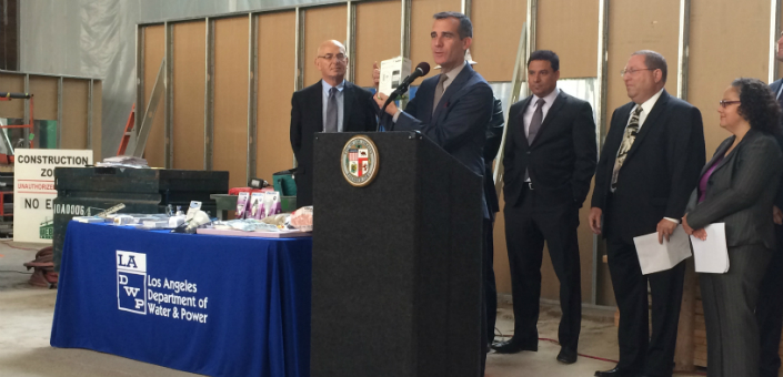 Mayor Eric Garcetti today highlighted the Los Angeles Department of Water and Power’s energy efficiency goal of 15% by year 2020—the highest and most ambitious energy efficiency goal by a major municipal utility in the United States. The new goal, adopted by Garcetti’s appointees to the Board of Water and Power in August 2014, exceeds the 10-year, 10 percent energy efficiency requirements set by AB 2021, and will create jobs while promoting energy savings for customers.